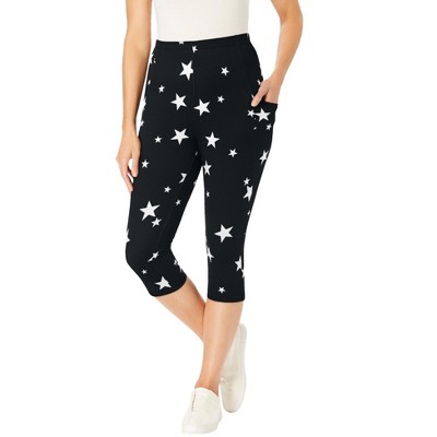 Woman Within Stretch-Cotton Knit Pull-On Printed Pocket Leggings