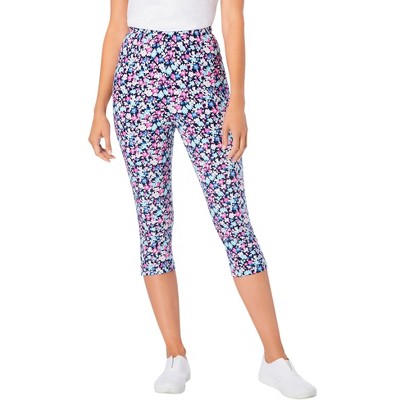 Woman Within Stretch-Cotton Knit Pull-On Printed Pocket Leggings
