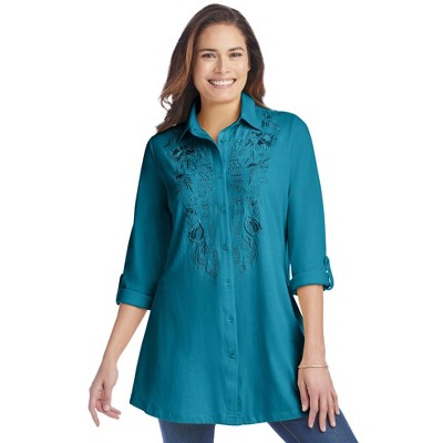 Woman Within 7-Day Layered-Look Embroidered Henley Tunic - 2 of 4Woman Within 7-Day Layered-Look Embroidered Henley Tunic - 3 of 4Woman Within 7-Day Layered-Look Embroidered Henley Tunic - 4 of 4