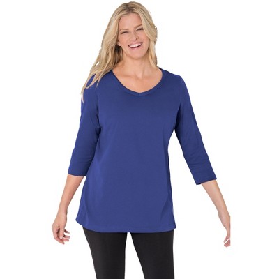Woman Within 7-Day Three-Quarter Sleeve Grommet Notch Tunic - 1 of 4