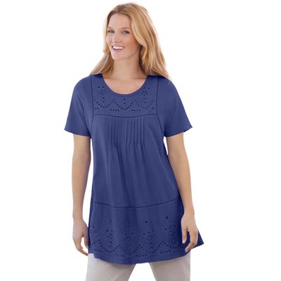 Woman Within 7-Day Three-Quarter Sleeve Pintucked Henley Tunic - 1X, Navy