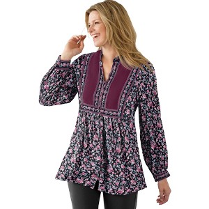 Woman Within Button-Front Mixed Print Tunic - 1 of 4