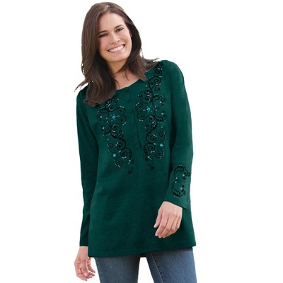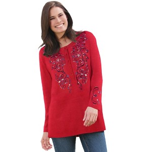 Woman Within Embroidered Henley Tee - 1 of 4