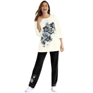 Woman Within Floral Tee And Pant Set - 1 of 4
