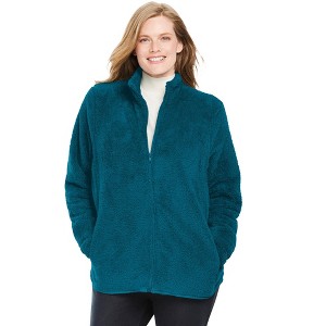 Woman Within Fluffy Fleece Jacket - 1 of 4