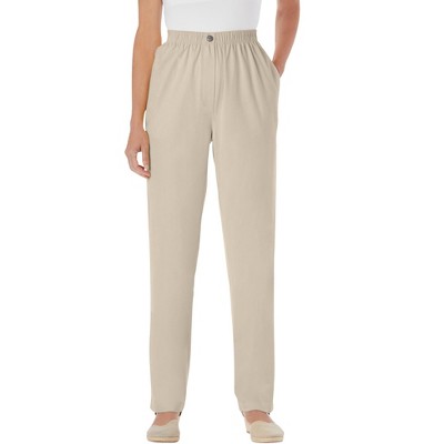Crafted from a lightweight linen blend for cool, comfortable wear. Pull-on design with a smooth flat-front waist and elastic back for a customized fit. Relaxed fit throughout, providing ease and everyday comfort. Convenient side seam pockets perfect for carrying essentials. Sits comfortably at the waist for a flattering look. Regular: 21" inseam; Petite: 20" inseam for an ideal length. Easy care, machine washable for hassle-free maintenance. Linen/rayon blend for durability and breathability. ImportedB29