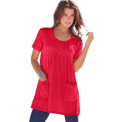 Woman Within Long-Sleeve Polo Shirt - 5X, Vivid Red