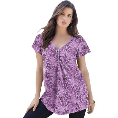 Woman Within Marled V-Neck Tunic - 14/16, Dark Purple Colorblock