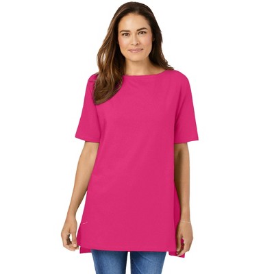 Woman Within Perfect Crewneck Tunic - 3X, Raspberry