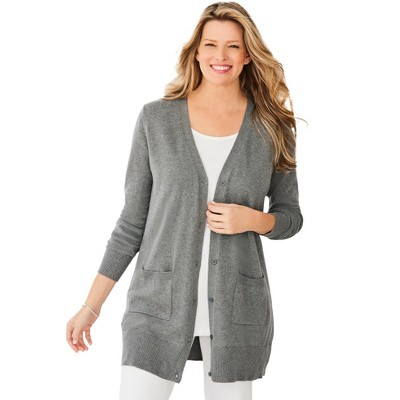 Woman Within Perfect Elbow-Length Sleeve Cardigan Sweater