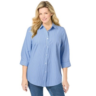 Woman Within Perfect Long Sleeve Shirt - 6X, French Blue Stripe