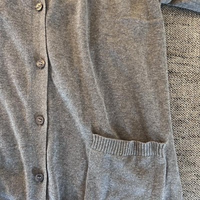 [This review was collected as part of a promotion.] This is a really nice, long cardigan. It’s a very traditional design and the black color is a true black and perfect for my needs. It’s comfortable and fits true to size. I’m postpartum and wearing a small size 12 which fits like a normal large. I like the front pockets, although they’re probably more for looks than holding much. The material is nice, but not the softest. It’s a bit itchy. Otherwise, I really like this cardigan. I received an incentive to write this review.