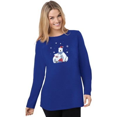Woman Within Perfect Printed Long-Sleeve Henley Tee