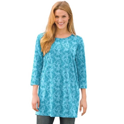 Woman Within Perfect Printed Three-Quarter Sleeve Crewneck Tunic