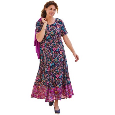 Woman Within Perfect Short-Sleeve Scoopneck Maxi Tee Dress - 5X, Navy