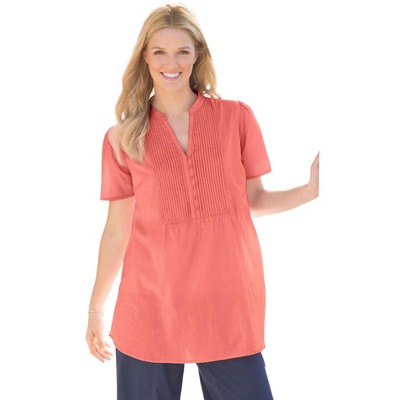 Woman Within Perfect Short-Sleeve Scoopneck Tee - 5X, Sweet Coral