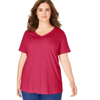 Woman Within Perfect Short-Sleeve Shirred V-Neck Tunic - 5X, Classic Red