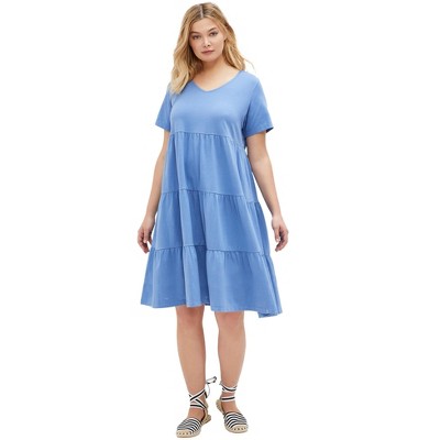 Woman Within Perfect Short-Sleeve V-Neck Tee Dress - 2X, Paradise Blue