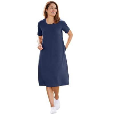 Woman Within Perfect Short-Sleeve V-Neck Tee Dress - 7X, Navy