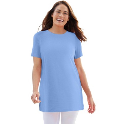Woman Within Perfect Short-Sleeve V-Neck Tee - M, French Blue