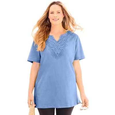Woman Within Perfect Short-Sleeve V-Neck Tunic - 1X, French Blue