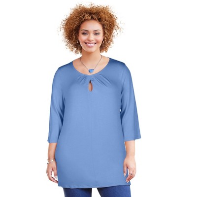 Woman Within Perfect Three-Quarter Sleeve Crewneck Tee
