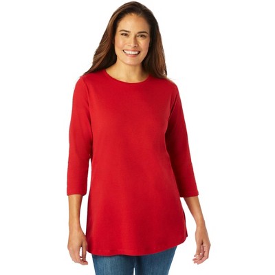 Woman Within Perfect Three-Quarter Sleeve V-Neck Tee