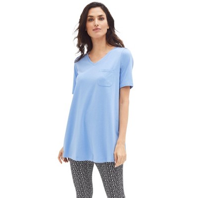 Discover our best-selling Perfect Tee collection, featuring this soft and timeless V-neck for a relaxed and comfortable fit. Perfect for everyday wear, this tee is designed to be your new go-to essential, available in a variety of vibrant, stock-up worthy colors. Wear it alone or layer it effortlessly for a versatile, stylish outfit any season. Enjoy the flattering 28" length that provides just the right coverage and looks great on everyone. Petite: 26" length. Made from high-quality materials: 100% Cotton for solids and a Cotton/Poly blend for prints and heathers, ensuring durability and comfort. Easy to care for with machine wash instructions, making it perfect for your busy lifestyle. Imported