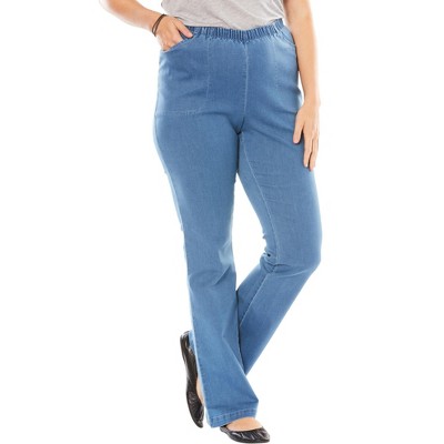 Woman Within Petite Wide-Leg Drawstring Denim Pants