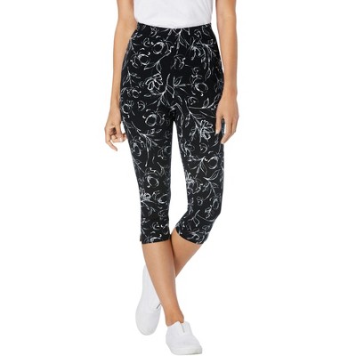 Woman Within Petite Elastic-Waist Pull-On Knit Pocket Capri Pants - 5X, Black Multi Tropicana