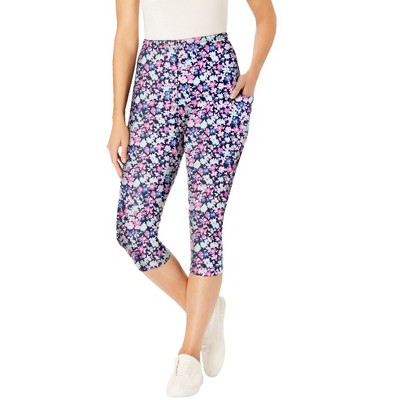 Woman Within Petite Stretch-Cotton Knit Pull-On Printed Pocket Leggings