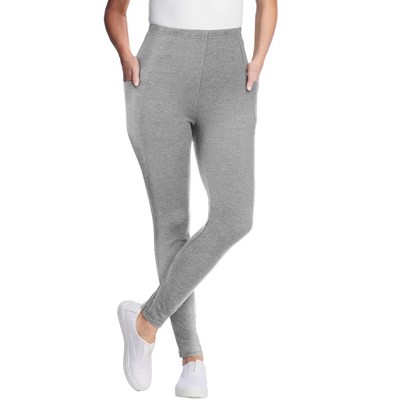Woman Within Petite Stretch-Cotton Knit Pull-On Wide-Leg Leggings - 3XP, Medium Heather Grey