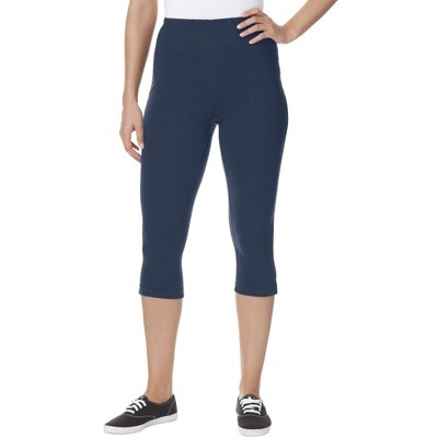 Woman Within Stretch-Cotton Knit Pull-On Pocket Capri Leggings