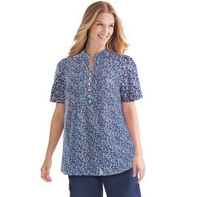 Woman Within Rayon 7-Day Pintucked Tunic Blouse - L, Navy Floral
