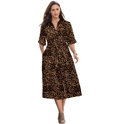 Woman Within Roll-Tab Sleeve Crinkle Shirtdress