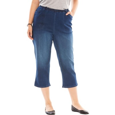 Woman Within Seersucker Pull-On Elastic-Waist Capri Pants