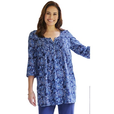 Woman Within Short-Sleeve Pintucked Henley Tunic