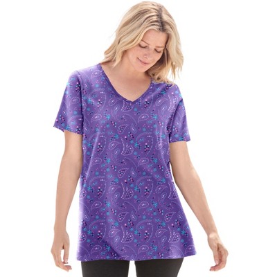 Woman Within Short-Sleeve V-Neck Shirred Tee - 3X, Purple Magenta