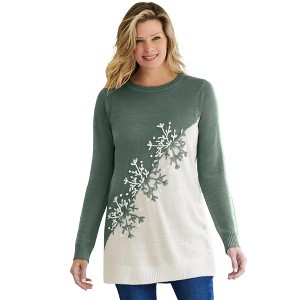Woman Within Holiday Snowflake Jacquard Sweater - 1 of 4