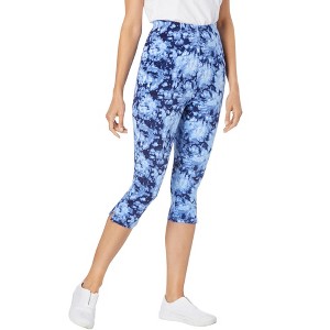 Woman Within Stretch-Cotton Knit Pull-On Printed Capri Leggings - 1 of 4