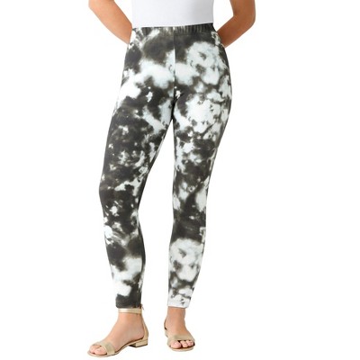 Woman Within Stretch-Cotton Knit Pull-On Printed Leggings - 5X, Black Watercolor Flowers