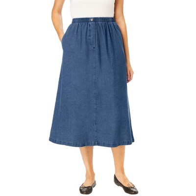 Woman Within Stretch Denim Front-Slit Skirt