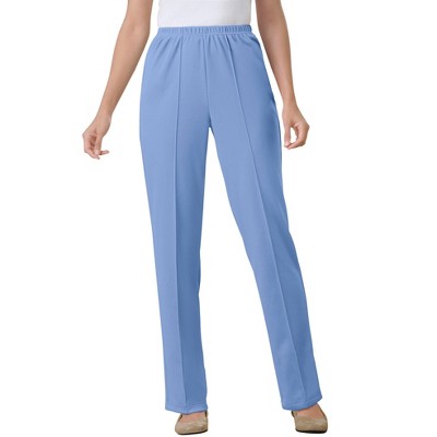 Woman Within Tall Seersucker Pull-On Elastic-Waist Pants - 44 T, Paradise Blue Plaid