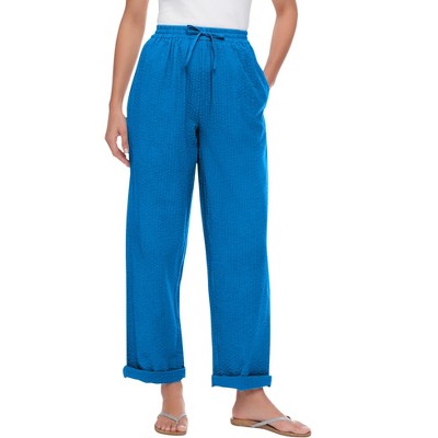 Stay cool and comfortable this summer with these breathable, cotton pants. Full-elastic waist for a perfect, comfortable fit every time. Sits slightly above the waist, offering a flattering and relaxed look. Features deep, roomy front seam pockets for added convenience and style. A versatile straight silhouette that pairs easily with most tops. Available in an average inseam of 30", petite inseam of 28", and tall inseam of 33". Durable and easy-to-care-for, machine washable cotton fabric. Perfect for everyday wear, enhancing your casual wardrobe effortlessly. Imported.