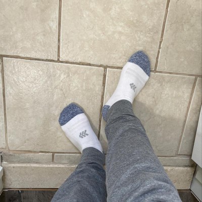 10 + one bonus pair pack of white athletic socks made from a moisture-wicking, midweight cotton blend helps keep your feet cool, comfy and dry. Arch support, reinforced heel and toe, Y-heel stitching and zone cushioning round out the comfortable fit. Plus, the no-show style makes them easy to wear with a variety of shoes, and the contrast-color heel and toe with a marled finish add a touch of style to your sock drawer.