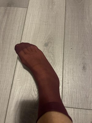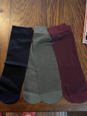 Pretty women's sheer 3pk Anklet Socks. These socks compliment my slacks well. The sheer material is comfortable, keeps its shape and stays in place. The colors are a nice neutral mix - black, gray and burgundy.