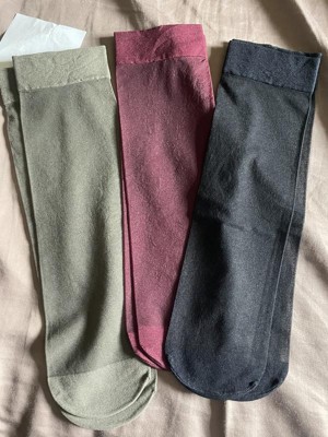 The 3-pack of sheer anklet socks by A New Day are very stylish and comfortable. These lightweight socks are great go to socks for dressy or casual wear. There are three great colors, which are black, burgundy, and gray.