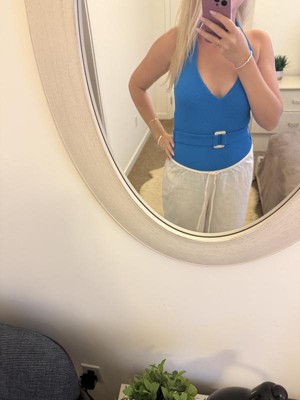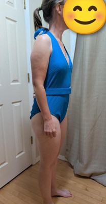 This one-piece from the Hey Bullseye Review Program is a total win! The ribbed ottoman fabric feels high quality and gives the suit a nice textured look that’s super flattering and holds its shape well. The plunge neckline is stylish without being too revealing, and the belt detail with the little accent buckle adds a chic touch. I love the vibrant blue because it really pops! The high leg cut gives a longer-leg look, but the medium coverage still feels secure. It’s comfy, supportive, and makes me feel confident every time I wear it. Highly recommend!