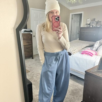 Best sweats ever! They have the look of barrel jeans. Comfy but still cute