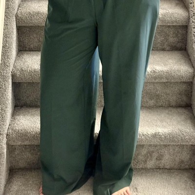 I know the description says wide leg but these are extra wide. I'm 5'1" and these pants eat me up. They are also high waisted so its not a flattering look. Maybe size down if youre considering buying them. They were almost my favorite work pants.
